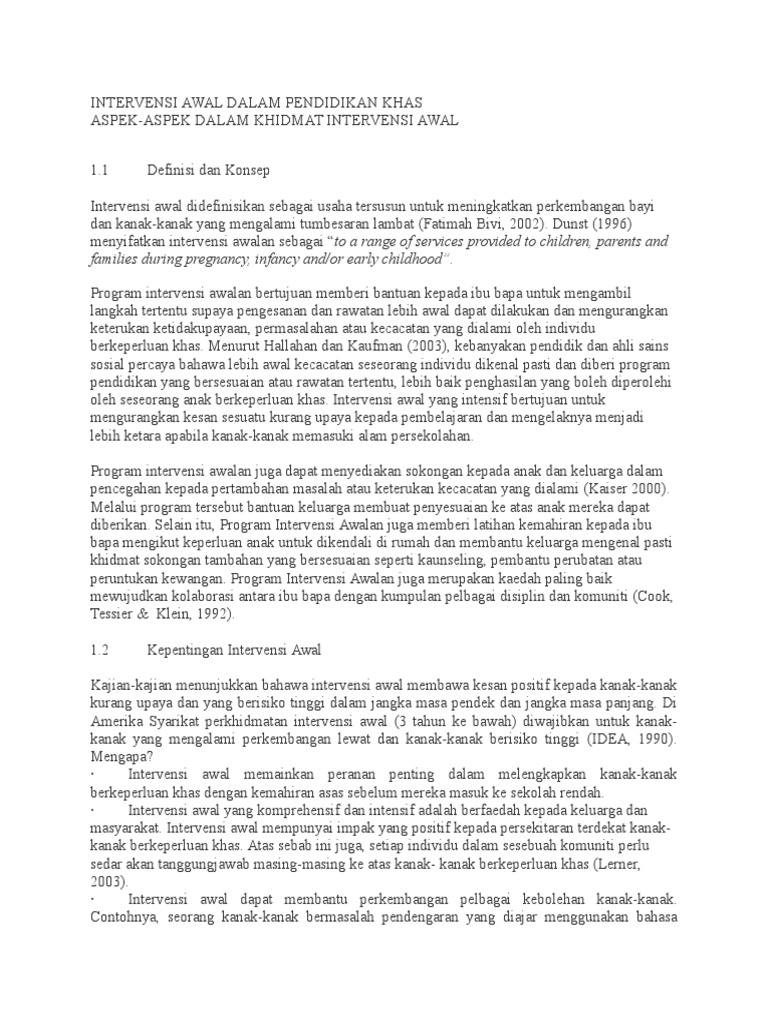 Intervensi Awal Dalam Pendidikan Khas from imgv2-2-f.scribdassets.com By universiti pendidikan sultan idris. Intervensi meningkatkan tumpuan dalam pembelajaran murid bermasalah pembelajaran. Anis amni binti abd rahim. Duhai ibubapa yang bijaksana, cukupkah sekadar kita melahirkan seorang anak dari dalam rahim kemudian dia membesar begitu sahaja tanpa sebarang dorongan, didikan dan pentarbiyyahan?tidakkah kita mahu anak kita hidup dengan penuh makna di setiap minit. Biologi jurnal penelitian geografi jurnal penelitian kualitatif jurnal penelitian jurnal penelitian pendidikan jurnal penelitian kesehatan jurnal penelitian daun pisang jurnal penelitian psikologi jurnal penelitian. Namun sop pkp atau langkah sekatan yang dilaksanakan ketika ini. · intervensi awal yang komprehensif dan intensif adalah berfaedah kepada keluarga dan masyarakat. Lebih awal intervensi, lebih efektif kesannya.