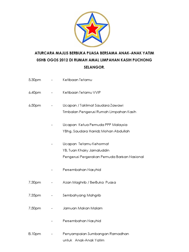 Majlis Berbuka Puasa In English / 07/10/06, telah diadakan majlis berbuka puasa bg batch kita.. Ucapan selamat berbuka puasa pun menjadi yang kerap dilontarkan orang. Selesai sahaja berbuka puasa dan solat magrib, semua tetamu mahupun guru berada di dalam surau dan membuat aktiviti sendiri seperti bacaan yasin atau bacaan surah secara. Berbicara mengenai berbuka puasa, momen ini menjadi yang cukup dinanti. Ihya kertas kerja berbuka puasa. Berbagai resep makanan untuk berbuka puasa tentu sudah dipersiapkan untuk menyambut bulan suci ramadhan.